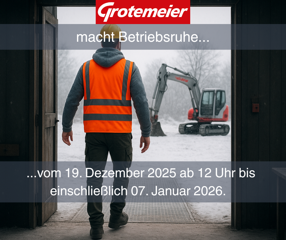 Auch in diesem Jahr gönnen wir uns über Weihnachten und den Jahreswechsel eine kurze Pause, um alle Abschluss- und Inventurarbeiten zu erledigen. Unser Betrieb ist vom 19. Dezember 2025 ab 12 Uhr bis einschließlich 7. Januar 2026 geschlossen.